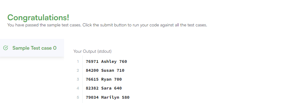 window 함수를 사용해서 간단하게 하려고 했으나 hacker rank에서는 버전문제로 실행이 안됐음