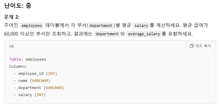 | [Chat GPT랑 같이 하는 SQL 공부] - 데이터 집계 (GROUP BY, HAVING) (3) | 2024.10.30 |
